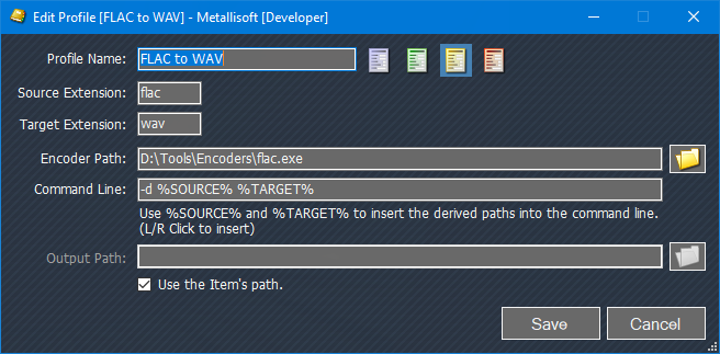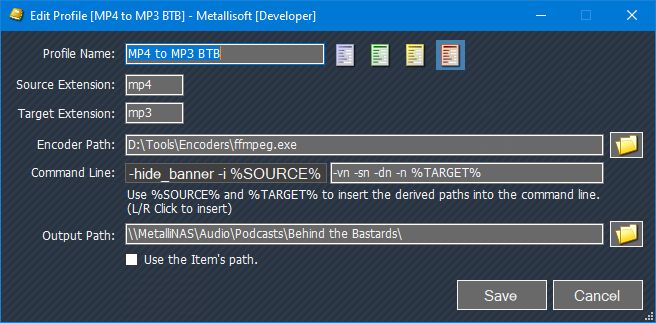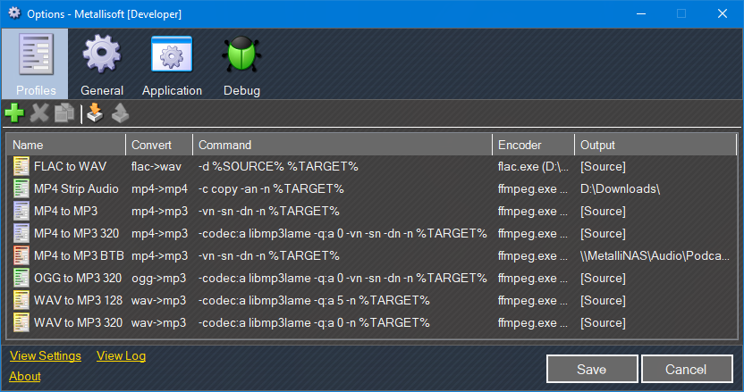 - Each Profile has it's own full command line.