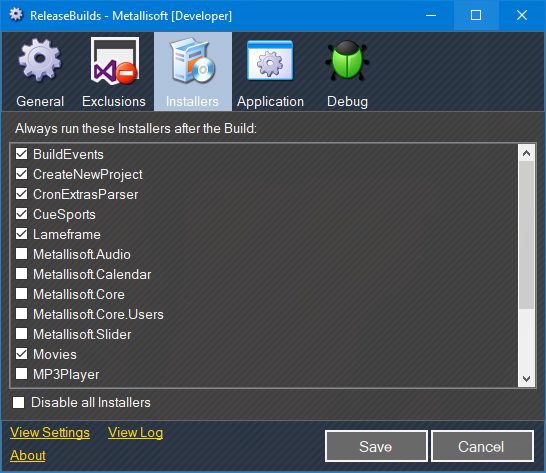 - Mark any Project's Installer to always run after the Build.